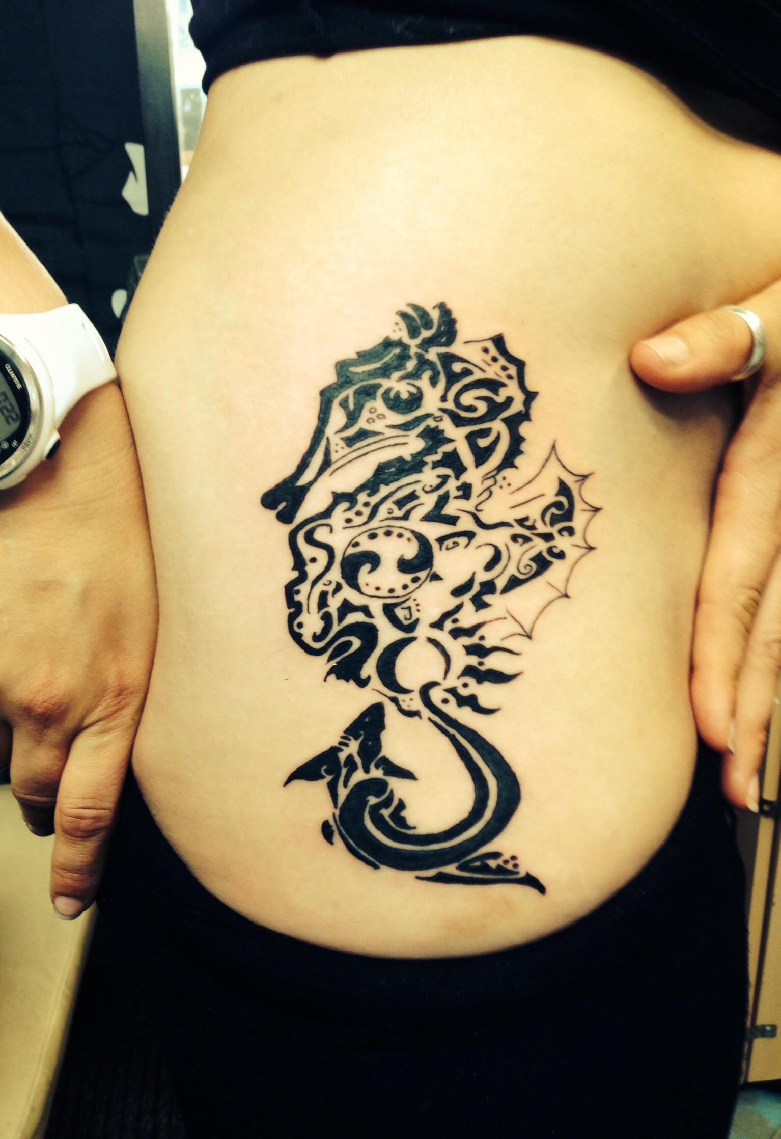 This one goes to one who loves sea and all around it… She had many sketches with her and all èm must be one. Shark, sunset, devil-fish, waves, turtle and everything wrapped in the seahorse tribal. To the drawing pad! This was not easy one but because she is diving in the sea for living I must dive to the paper with my pen. Gotta love those people who has that surf-attitude even little, me? nope.. Been diving keys from the bottom of public pool but that’s all, only sea where i have been swimming is Norwegian sea and that was so frigging cold…
