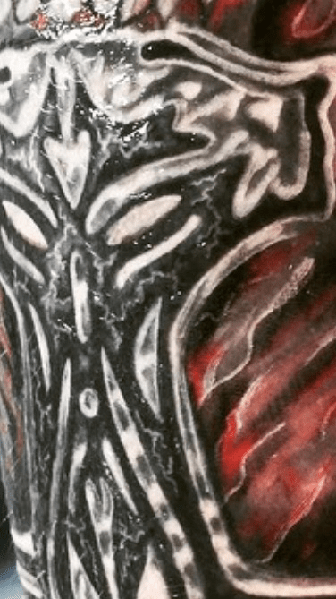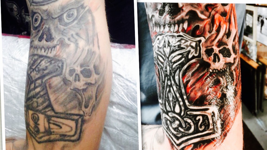 It sure was a mess, on the bright side I must say that artist before me didn’t apperently knew what is black or he/she was using some bad ink. I was using tribal black and Intenze colours so… Not so hard to hide all those mistakes. Definitly hard part was that I had to “freehand” the whole area with Sharpies and just get into it. Can’t say what I do differently next time because i’m sure this kind “tattoos” just need epic “brainstorm” before it could look cool. Still I’m quite happy to this one.
