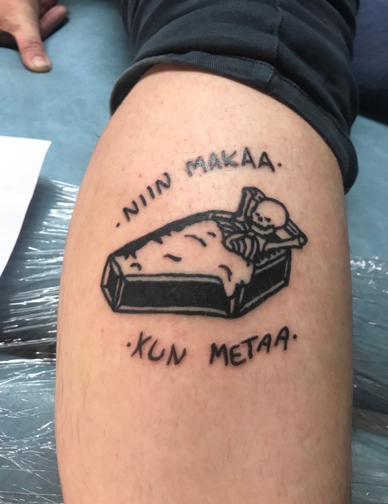Here we go. Text is big hard to translate to English but long story short… it’s something about how you make your bed if you’ll use too much methamphetamine, hard to explain because it’s a joke in Finnish language. Trust me it’s fun.