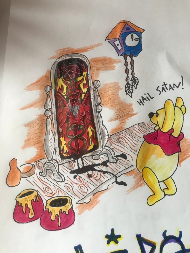When I was a kid, I made lots of those scrapbooking stylish posters, where famous cartoons characters did something disgusting or illegal, if it’s belittled, probably it works just fine.. not my motto on the time, but close enough.