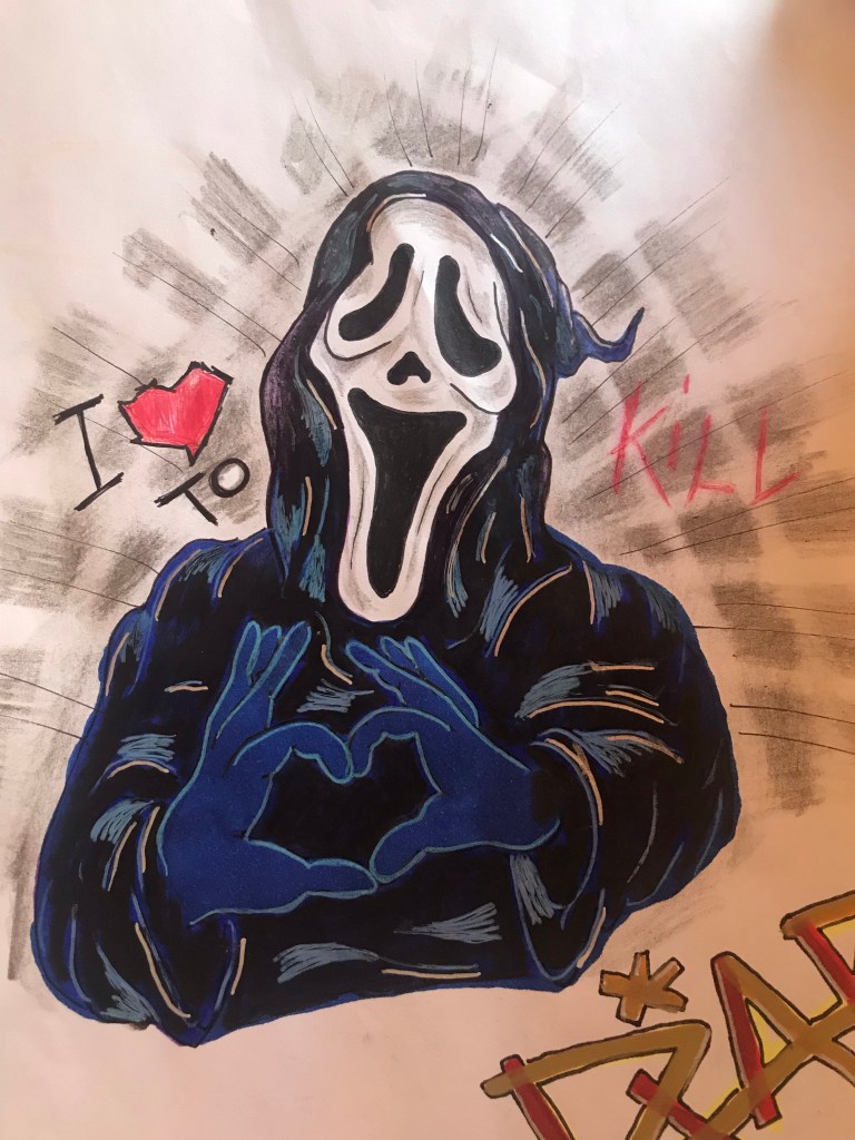 Ghost face with “Scary movie vibes” gives the whole new point of view in drawings.