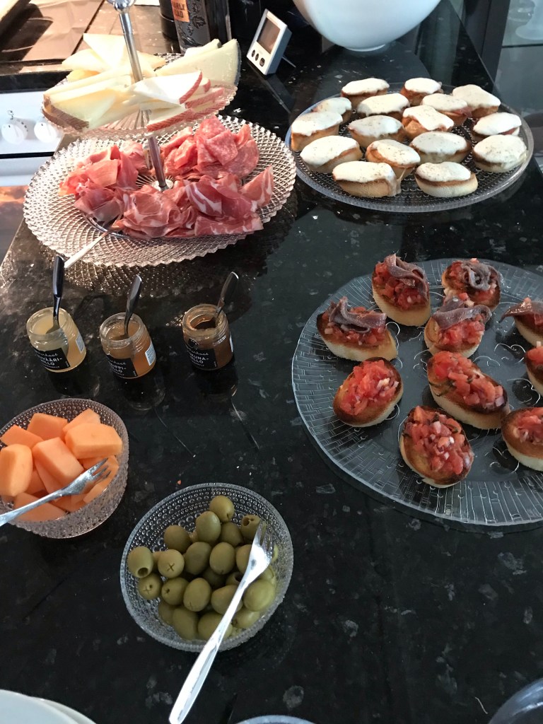 Tapas is great way of enjoying the evening. On the photo is few options to enjoy with wine.