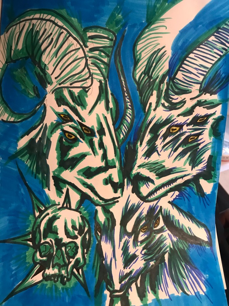 This satanic goat picture is actually a sketch where I tested all new pencils I have bought from the art store. Only idea was to see how good the pencils are for coloring.